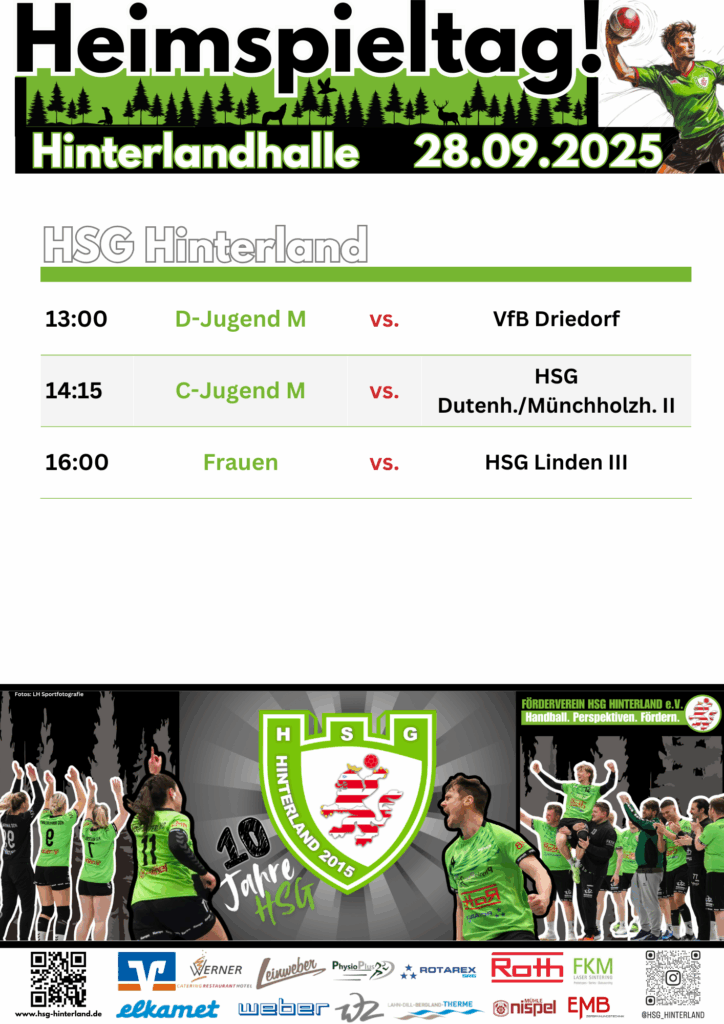 Neues Wochenende – neue Aufgaben! Für die Männer geht es auswärts in Marburg um Punkte – schaut hier gerne vorbei und feuert unsere junge Männermannschaft an! Die Frauen spielen am Sonntag in der Hinterlandhalle gegen die HSG Linden III und wollen dabei zu den nächsten Punkten greifen. Im Vorfeld spielen 2 Jugendteams – kommt am Sonntag in die Halle! Für Verpflegung wird wie immer gesorgt sein!