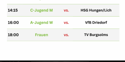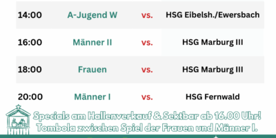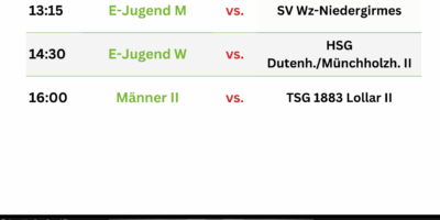 Ein Heimspieltag am Nikolaustag mit u.a. den Männern der Zweiten erwartet euch am kommenden Wochenende! Feuert die Männer der Zweiten an – es wird eine schwere Aufgabe gegen die Zweite aus Lollar. Auch auswärts sind mehrere unserer Jugendteams gefragt, selbst am Montagabend steht noch ein Nachholspiel der weiblichen B-Jugend an – wir wünschen allen Teams viel Erfolg!