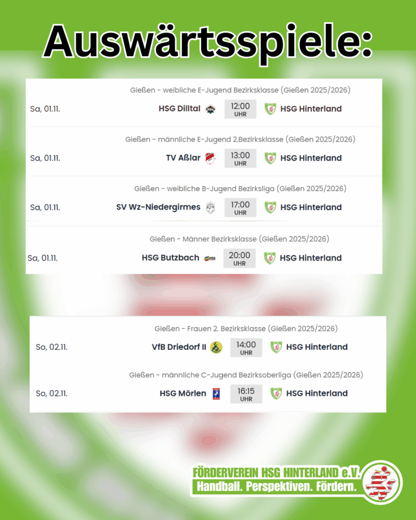 Die Männer müssen dabei beim Ligaprimus der HSG Butzbach antreten und hat somit eine sehr schwere Aufgabe vor der Brust. Die Frauen greifen nach kurzer Spielpause auch wieder ein und sind in Driedorf gefragt. Im Jugendbereich steht ein Heimspieltag am Sonntag an: Schaut gerne vorbei und feuert unsere Teams an – wir freuen uns auf euch!