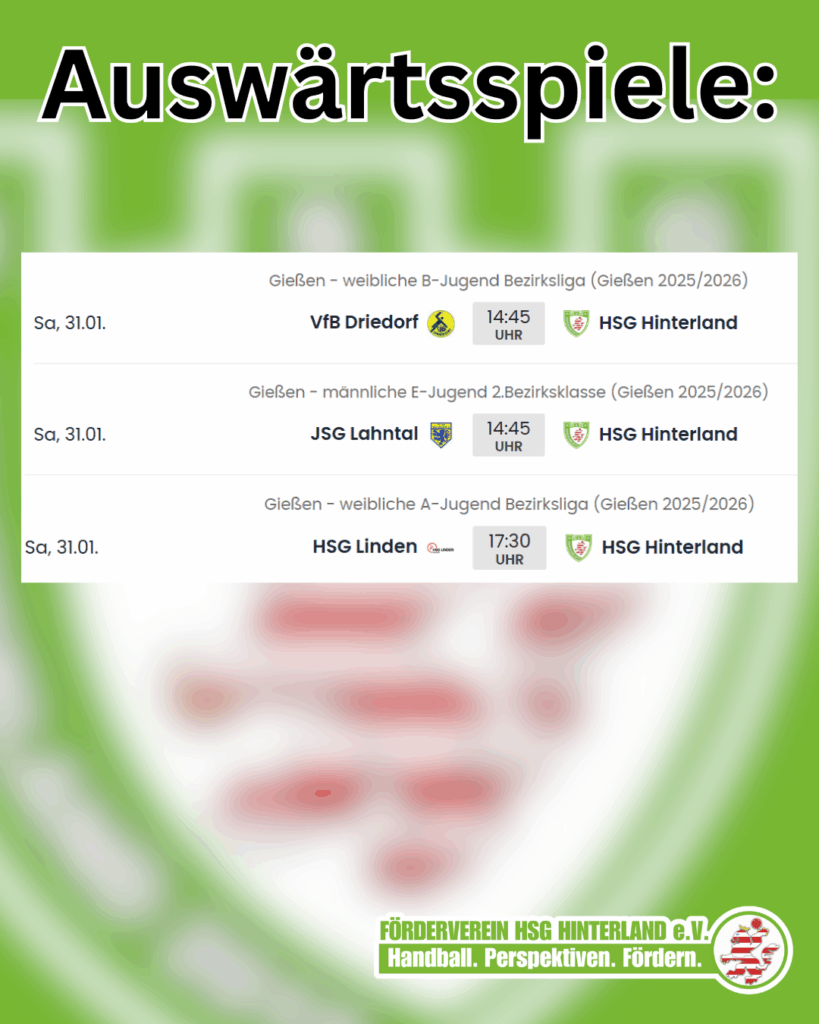 Auch auswärts sind unsere Jugendteams am Samstag gefragt. Wir wünschen allen Teams viel Erfolg!
