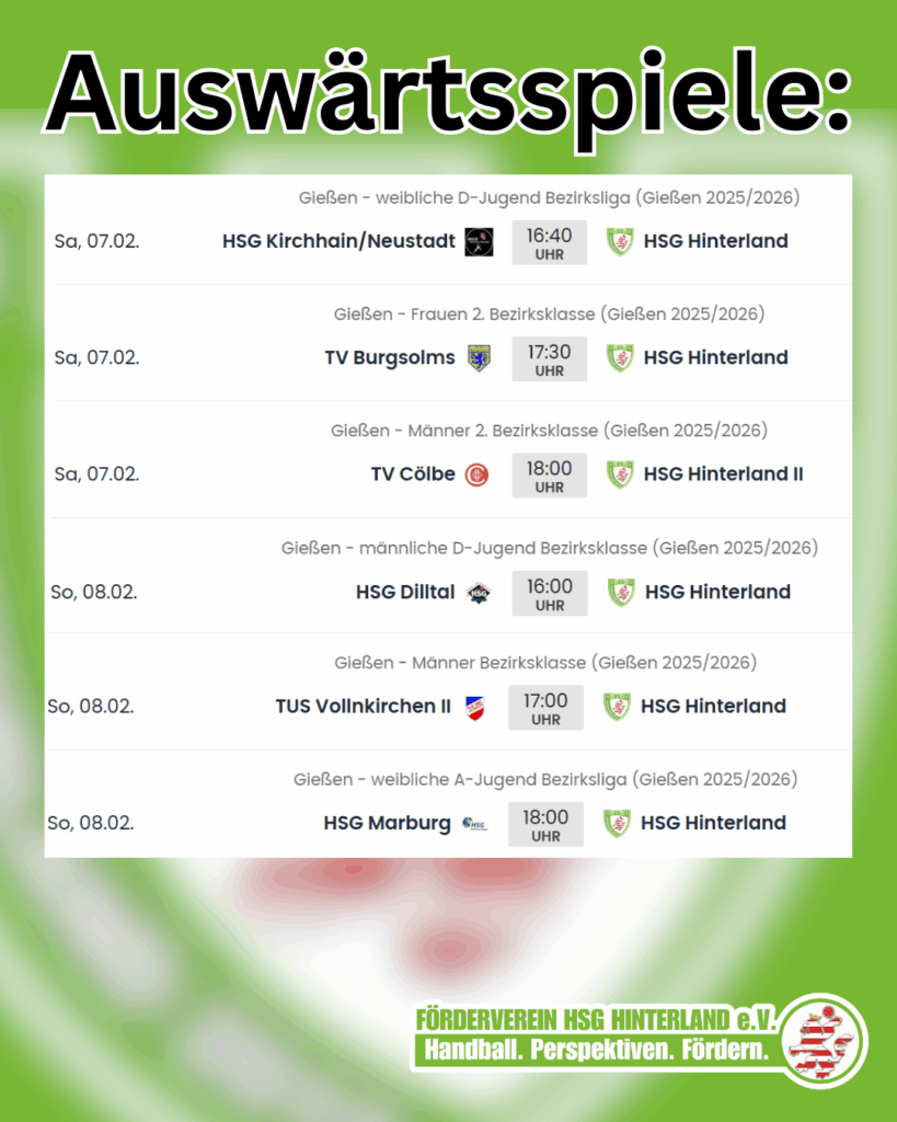 Jugendspiele in der Hinterlandhalle und Auswärtsspiele der Aktiven: