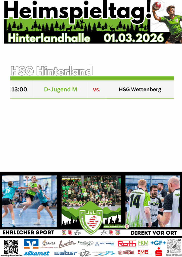 Am Sonntag steht ein Heimspiel der männlichen D-Jugend in der Hinterlandhalle an. Wer hier unseren Nachwuchs anfeuern möchte, kann und darf gerne vorbeikommen.